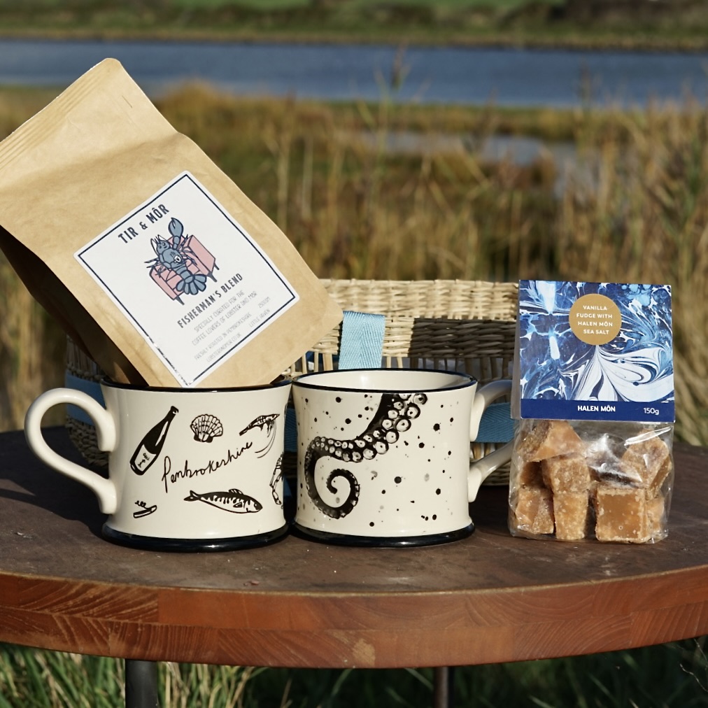 Here at Little Haven we are obsessed with coffee. So the time came to create our own. Then a large mug to enjoy it in… Then maybe add some Halon Môn fudge and you got the perfect gift hamper.
